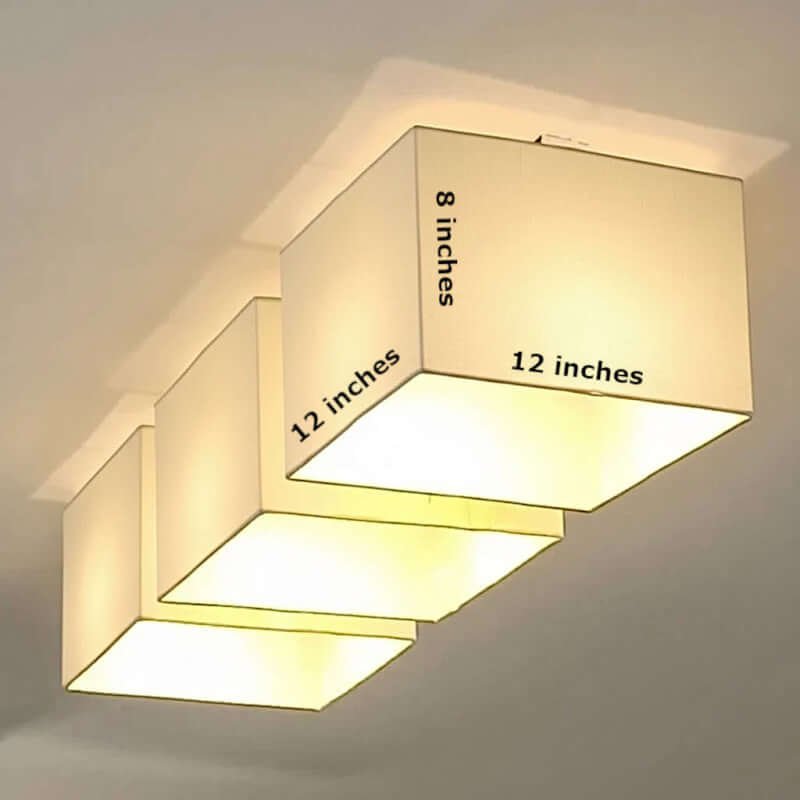 Elevate your dining room, living area, or bedroom with our stylish Off-White Chandelier Lamp Shades. This modern ceiling fixture features three 12-inch square lamp shades crafted from premium off-white cotton fabric, offering a soft, inviting glow that instantly becomes a central attraction for large rooms. Designed for easy installation, the entire unit is supported by a single wooden base that securely fixes to the ceiling. It is compatible with E27 type bulb holders, giving you flexibility in choosing your preferred lighting. Its sleek, contemporary design and quality materials make it the best choice for living rooms and bedrooms seeking a chic, ambient lighting solution. Please note: Bulb is not included.