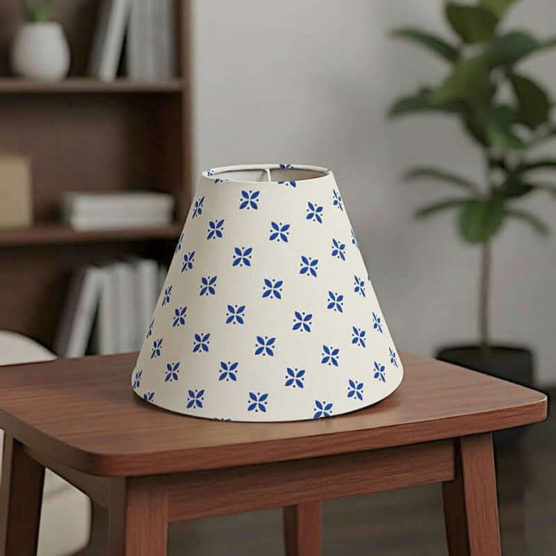 Indigo Blue Print Cone Lamp Shade – Light Cream Fabric
