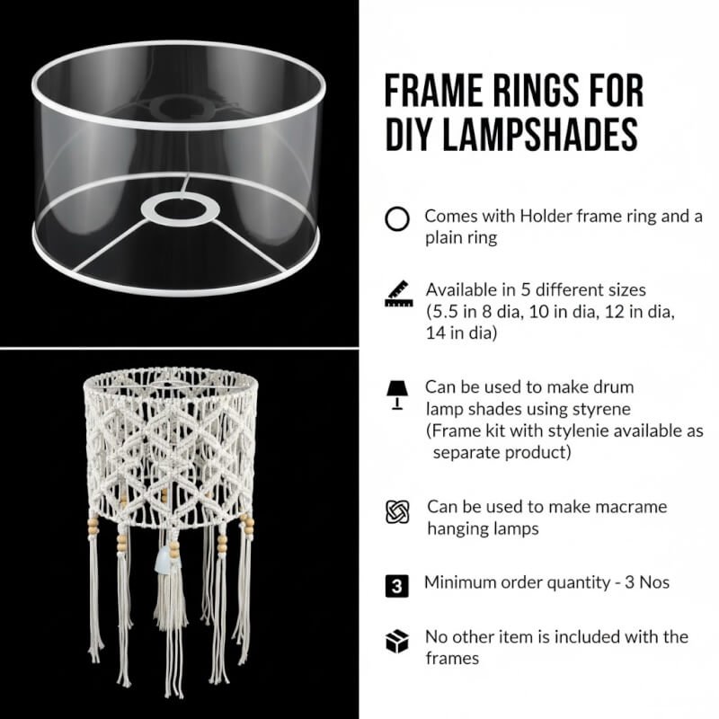 1 review for Lamp shade frame ring / DIY macrame hanging lamp kit (5.5/8/10/12/14 inches dia)- Lamp wire frames to make drum lamp shades