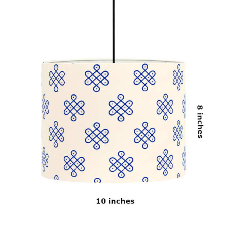 - Kolam Art: The fabric shade features an intricate traditional Kolam design—the beautiful geometric patterns drawn at the entrance of homes in Southern India to invite prosperity. Each design is hand-printed, ensuring a truly unique piece with subtle variations that celebrate its handcrafted nature.