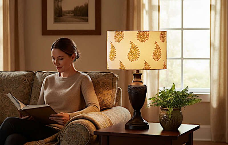 Elevate your home lighting with the Woodooz Home Décor® Printed Lamp Shade, featuring an elegant gold paisley design. This drum lamp shade effortlessly blends modern sophistication with timeless charm, making it a perfect fit for your table or floor lamps.