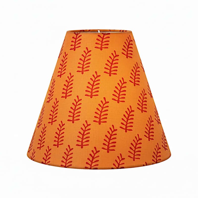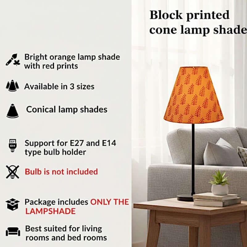 Elegant and attractive conical lampshade for your table lamps. Bright orange color fabric with motifs sprinkled across to give your room and space a really vibrant and graceful look..