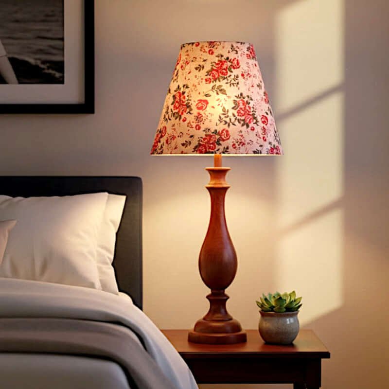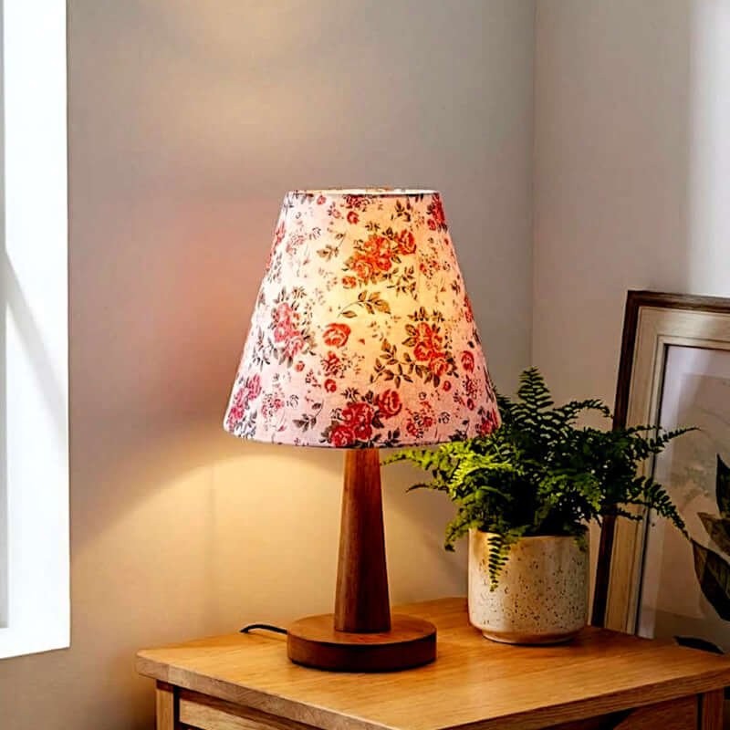 Illuminate your space with the charm of our Pink Floral Fabric Conical Table Lamp Shade. Crafted from beautiful pink floral fabric, this shade instantly adds a touch of classic elegance and warmth to any room. Its universally appealing conical shape is designed to complement most table lamp bases. Perfectly sized and styled, it is best suited for living rooms and bed rooms, creating a cozy and inviting ambiance. Please note that this purchase includes ONLY THE LAMPSHADE; the lamp base and bulb are not included.