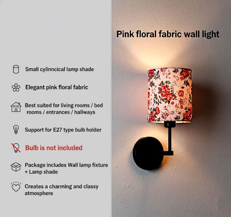 The floral print shade casts a warm, ambient light that instantly enhances bedrooms, living rooms, hallways, foyers and dining spaces. Whether you want to create a cozy corner or simply elevate your décor, this decorative wall light serves as both a lighting solution and a stylish interior accent.