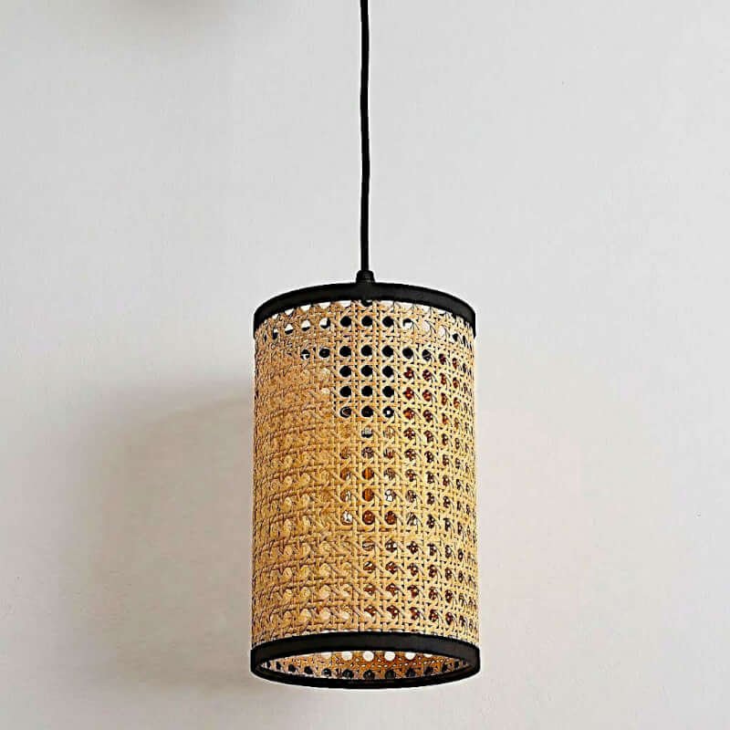 Rattan / Cane Cylinder Hanging Lamp – Handcrafted Natural Woven Pendant Light for Living Room & Bedrooms