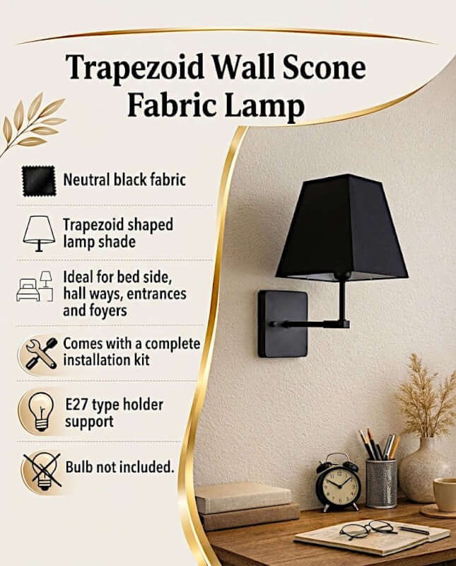 Elevate your home’s aesthetic with our Trapezoid Black Fabric Wall Scone. This minimalist lighting fixture blends contemporary design with functional elegance. The high-quality black fabric shade diffuses light beautifully, creating an inviting atmosphere in any room.
