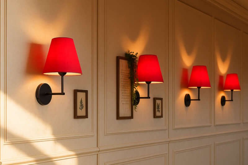 Wall lamp light for hall and bed room | Wall lamp fixture with red cone lamp shade